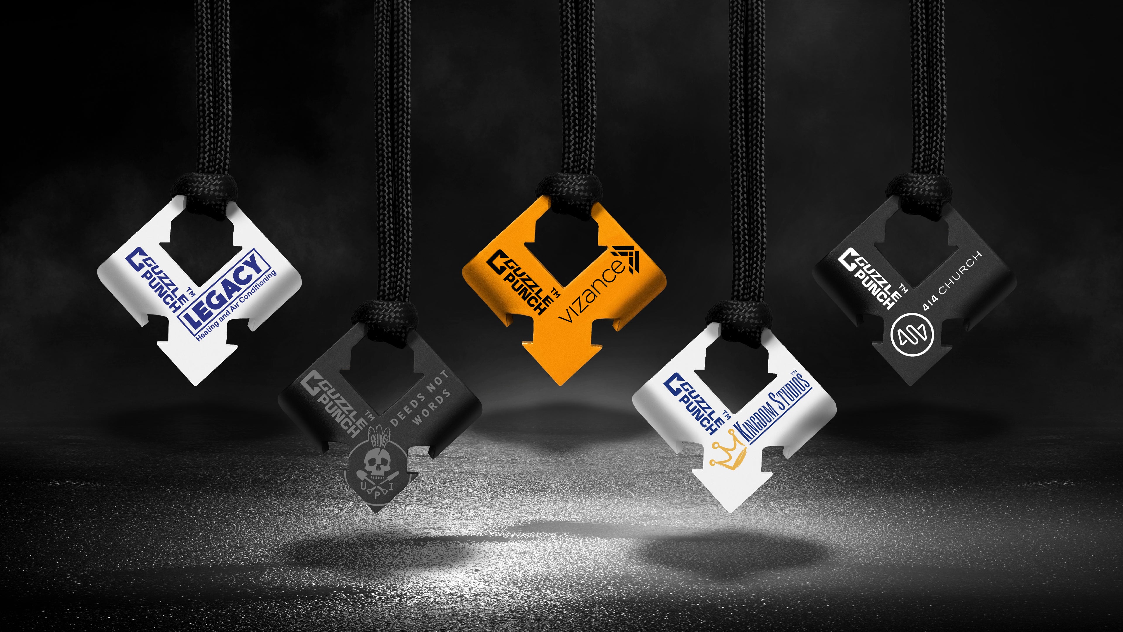 At a minimum qty of 100, we'll customize your Guzzle Punch™ with a company or event logo. Choose from any of the seven standard colors. Standard black lanyard included.